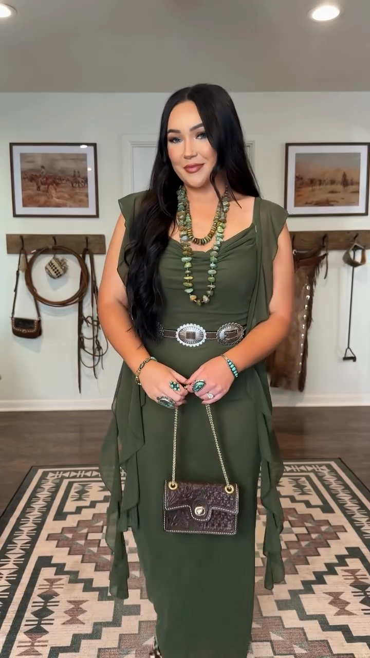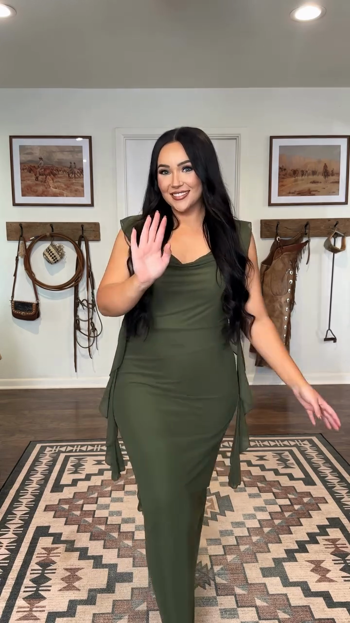 Olive Green Cowl Neck Maxi Dress