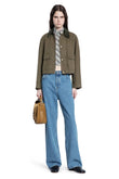 Olive Green Cropped Jacket with Corduroy Collar