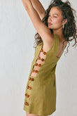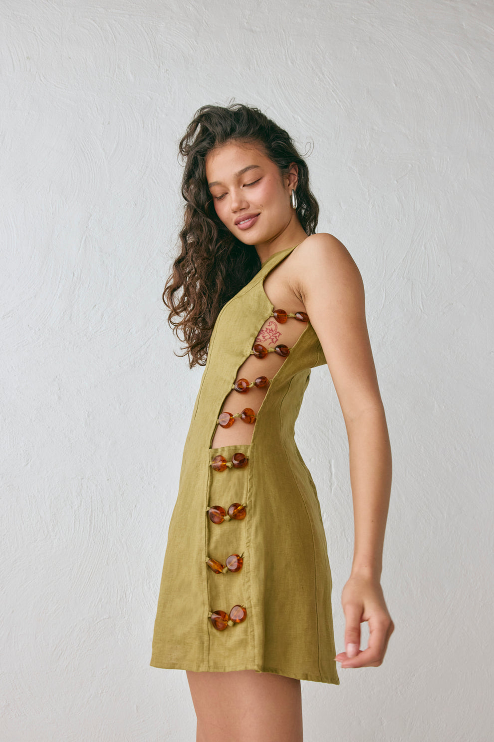 Olive Green Side Cutout Bead - Detail Mini Dress