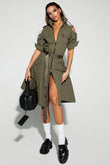 Olive Green Utility - Style Dress with Cut - Out Shoulders