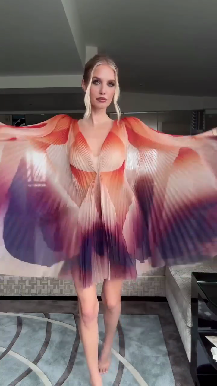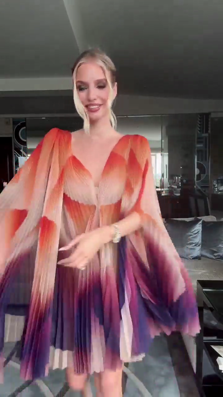 Ombre Pleated Mini Dress with Flutter Sleeves