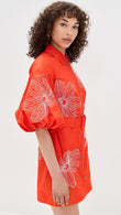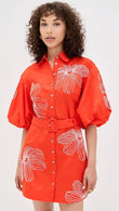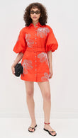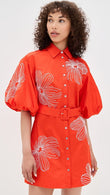Orange Embroidered Button - down Shirt Dress