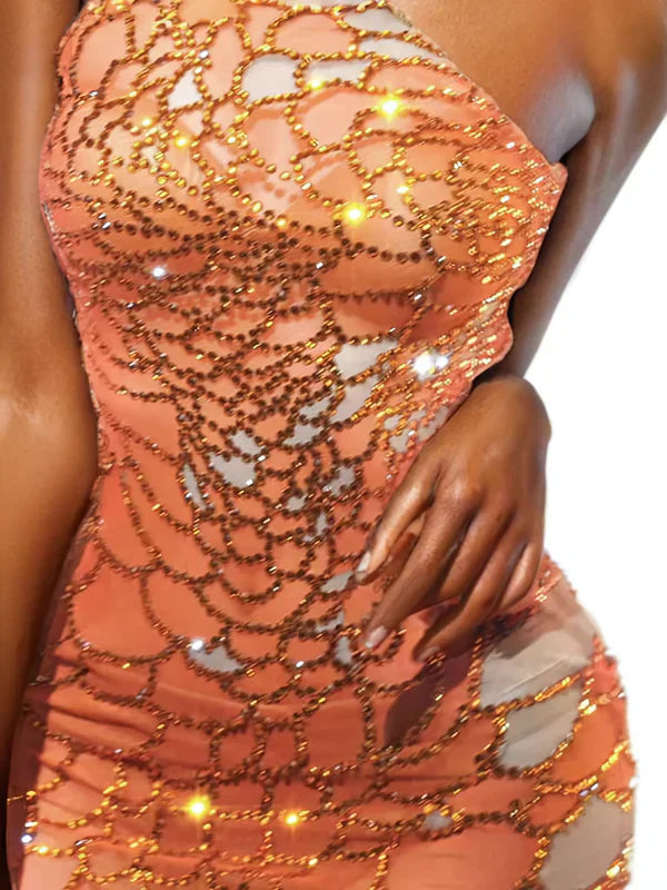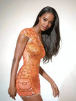 Orange Sequined One - Shoulder Mini Dress