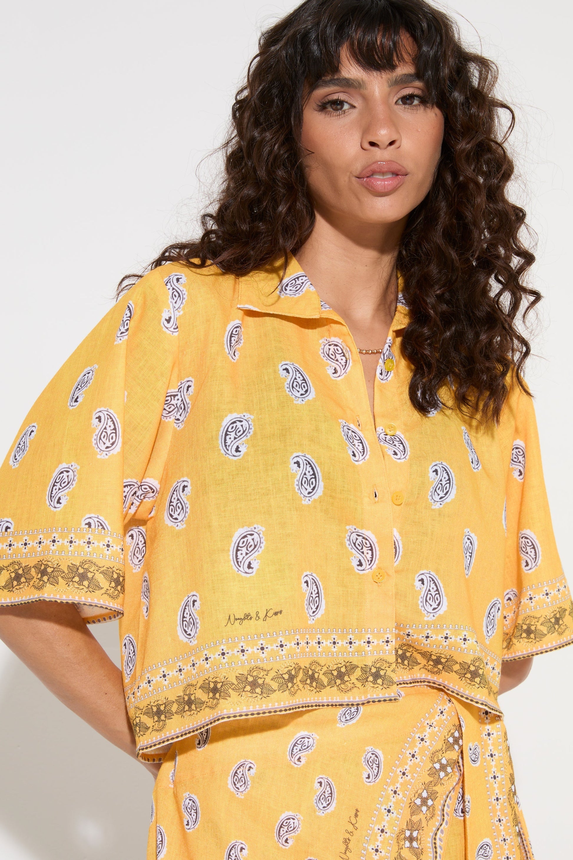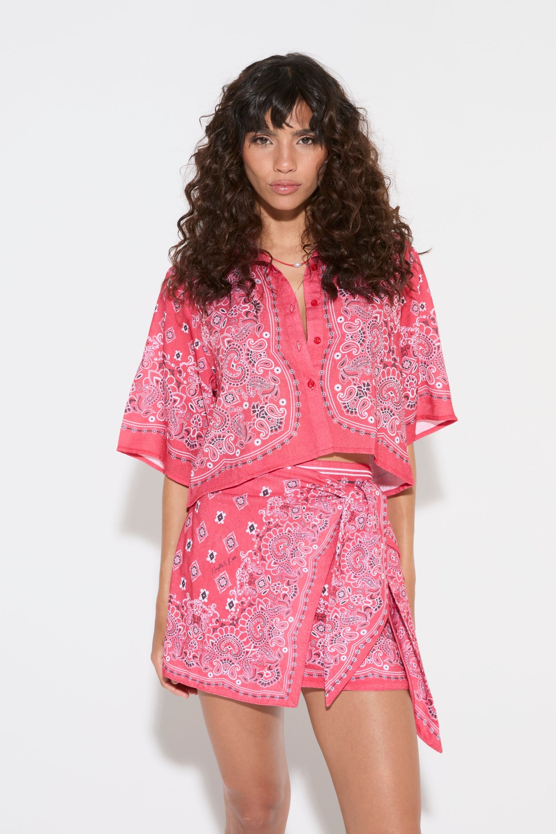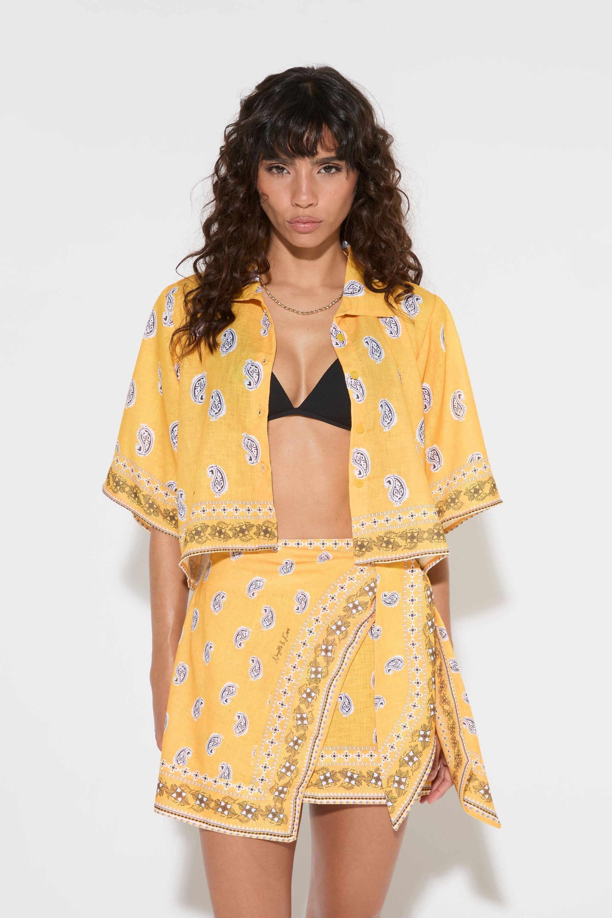 Paisley Print Crop Shirt & Wrap Skirt Set