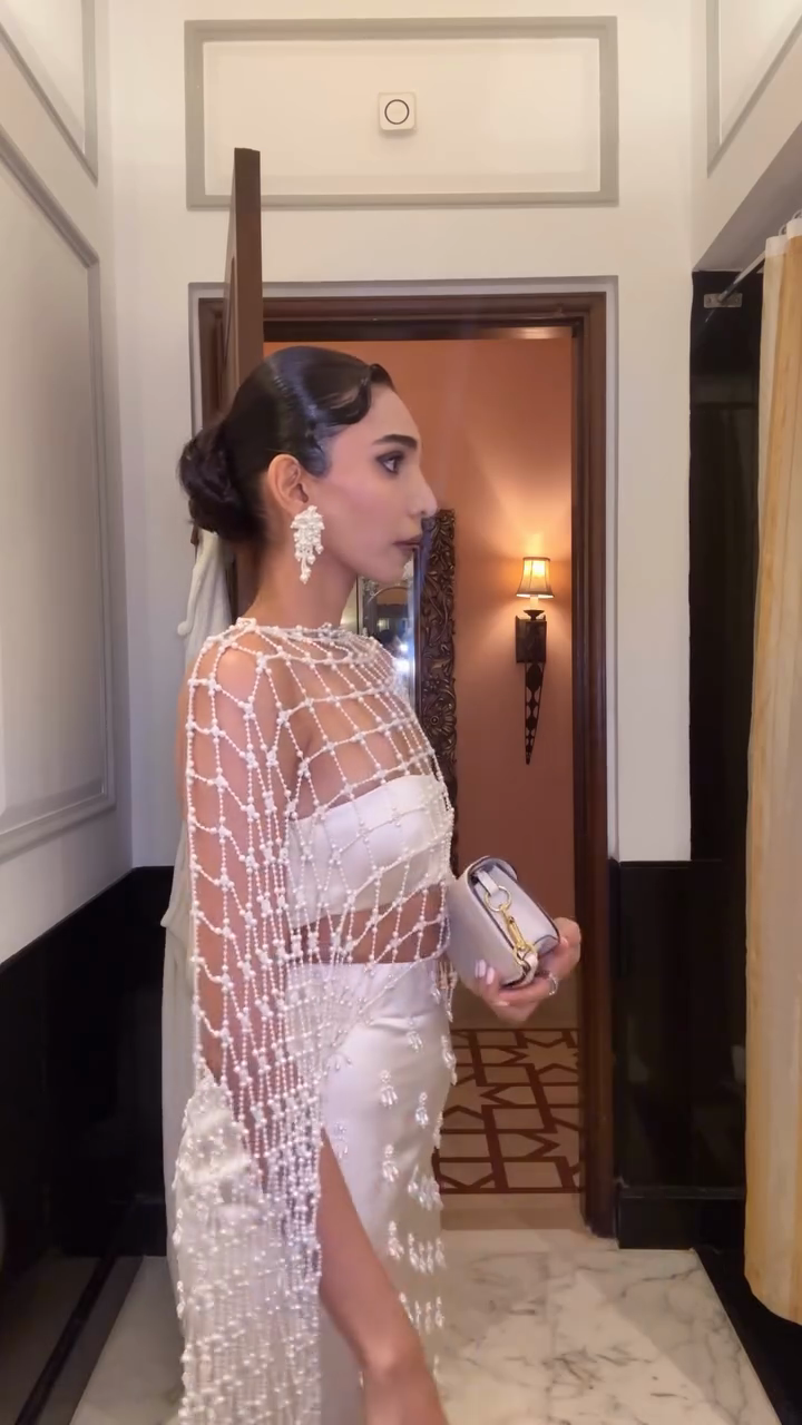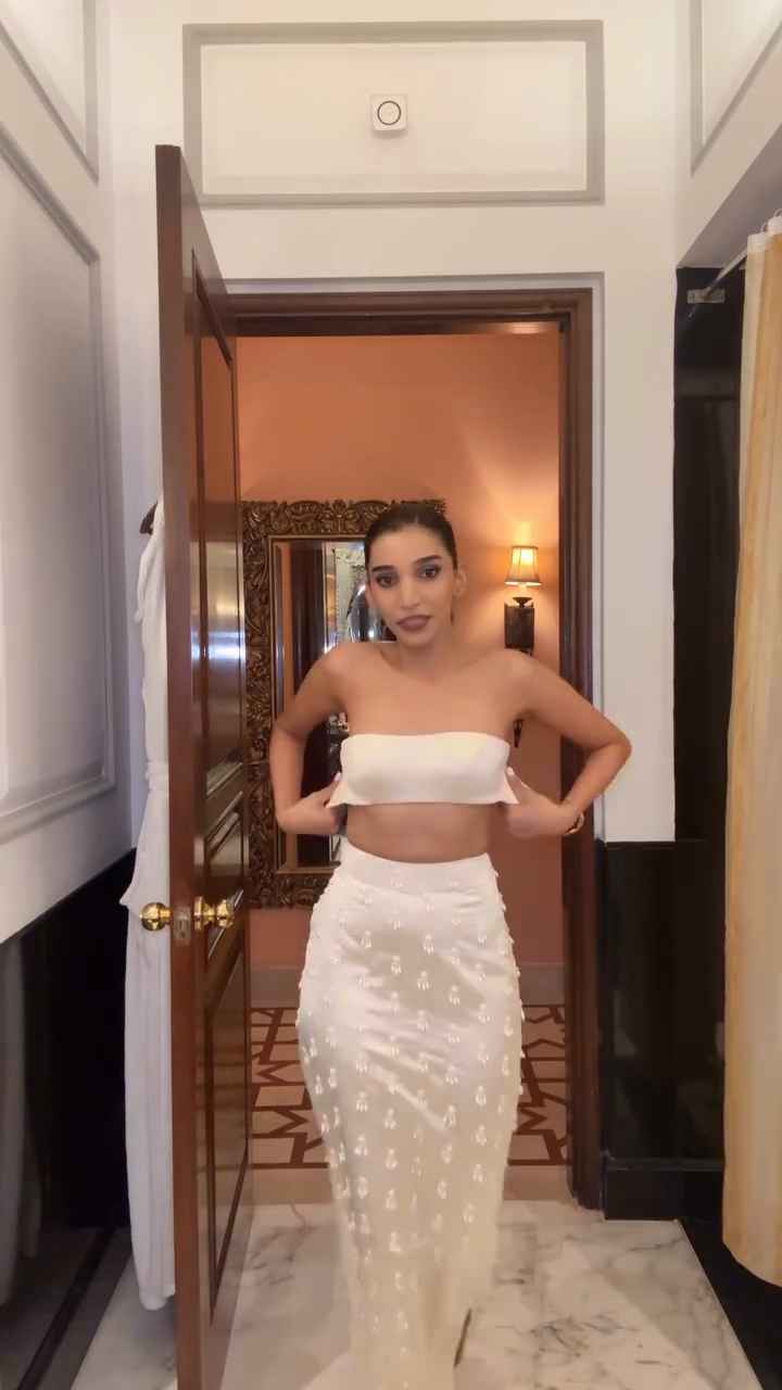 Pearl Embellished Cropped Skirt and Top Set