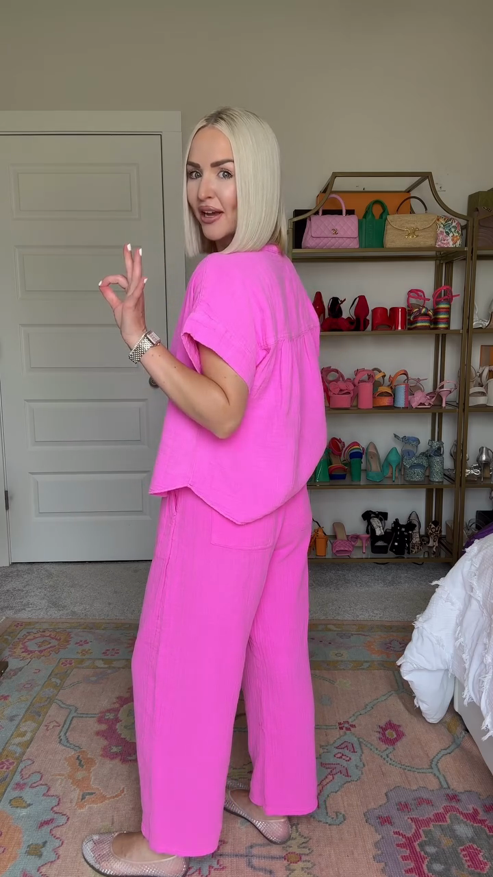 Pink Button - Up Shirt & Wide - Leg Pants Set