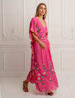 Pink Floral Embroidered Kaftan Maxi Dress