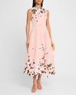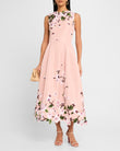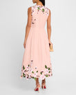 Pink Floral - Embroidered Sleeveless Midi Dress
