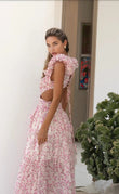 Pink Floral Print Ruffled Wrap Maxi Dress