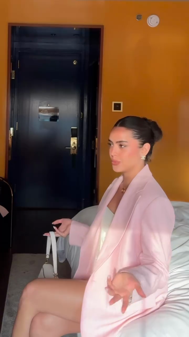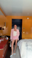 Pink Oversized Blazer, White Tube Top & Embellished Shorts Set