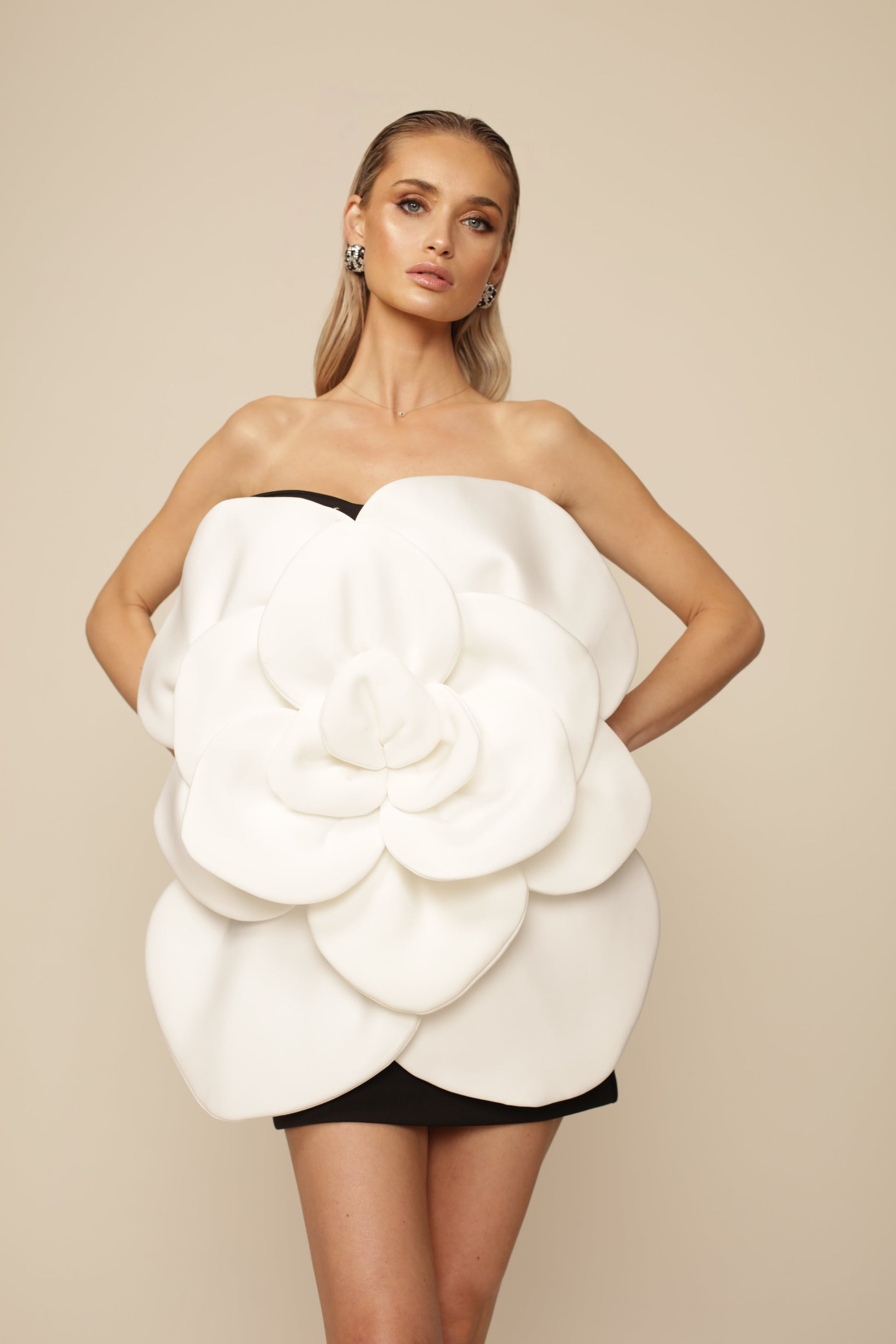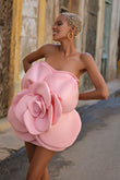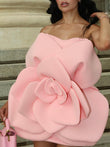 Pink Strapless 3D Flower Mini Dress