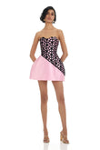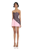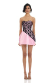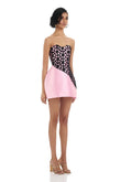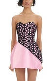 Pink Strapless Mini Dress with Black Mesh Detail