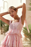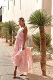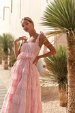 Pink Tiered Ruffle Maxi Dress with Bow - Strap Detail