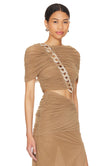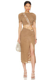 Pleated Cropped Top and High Slit Midi Skirt Set