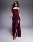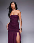 Plum Strapless Ruched Maxi Dress with Side Slit