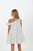 Polka Dot One - Shoulder Tie - Detail Mini Dress