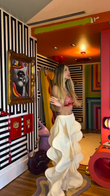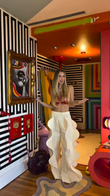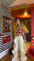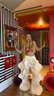 Printed Bodice and Wavy Edges - White Hem Pants Set