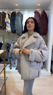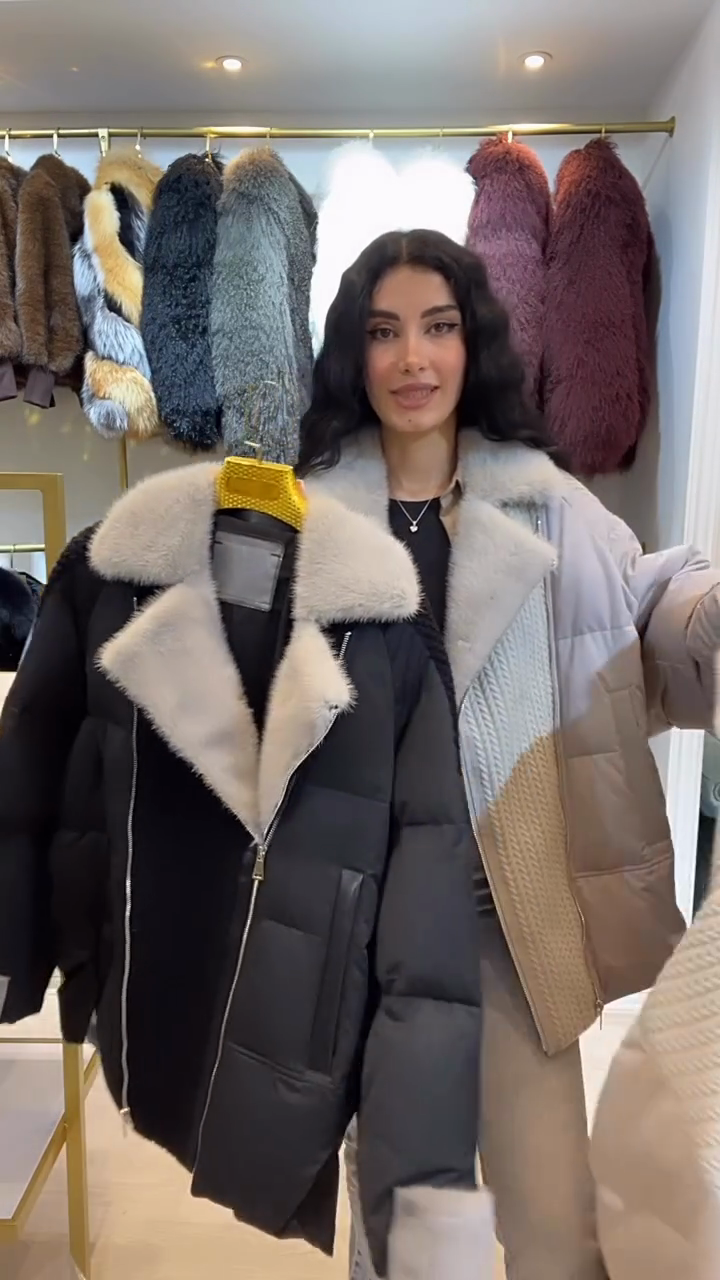 Puffer Jacket with Faux Fur Collar and Knit Insert
