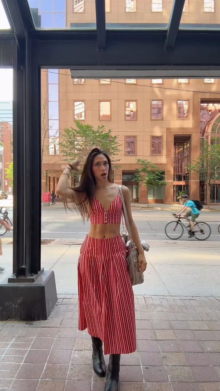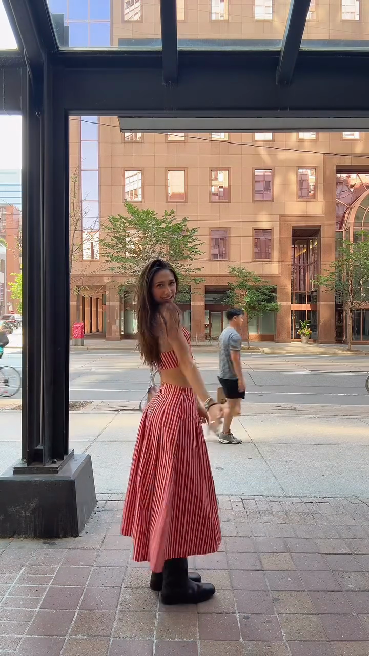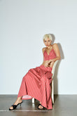 Red and White Striped Crop Top and Midi Skirt Set