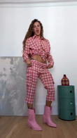 Red Checkered Cropped Shirt & Cargo Pants Set