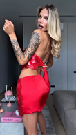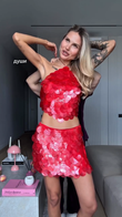 Red Ombre Petal - Embellished Halter Crop Top and Mini Skirt Set
