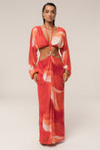 Red Print Cut - Out Maxi Dress