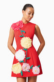 Red Sleeveless Mini Dress with 3D Floral Appliqués