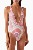 Turn heads with this Retro Swirl Deep V One-Piece Swimsuit, featuring a vibrant, 70s-inspired swirl print in shades of pink, peach, and cream. The deep V neckline adds a bold, feminine touch, while the smooth, stretchy fabric ensures a flattering, sculpted fit. Crafted from a premium nylon-spandex blend for comfort and flexibility, it’s perfect for poolside lounging or beach getaways.