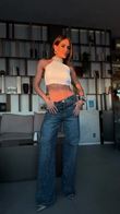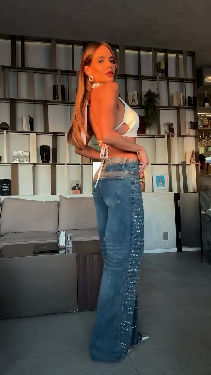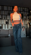 Rhinestone - Embellished Denim & Halter Crop Top Set