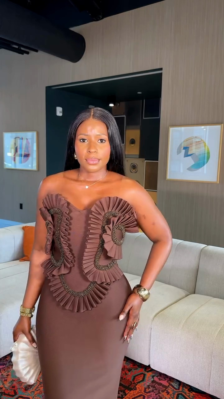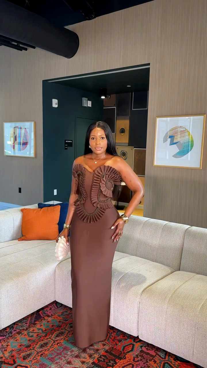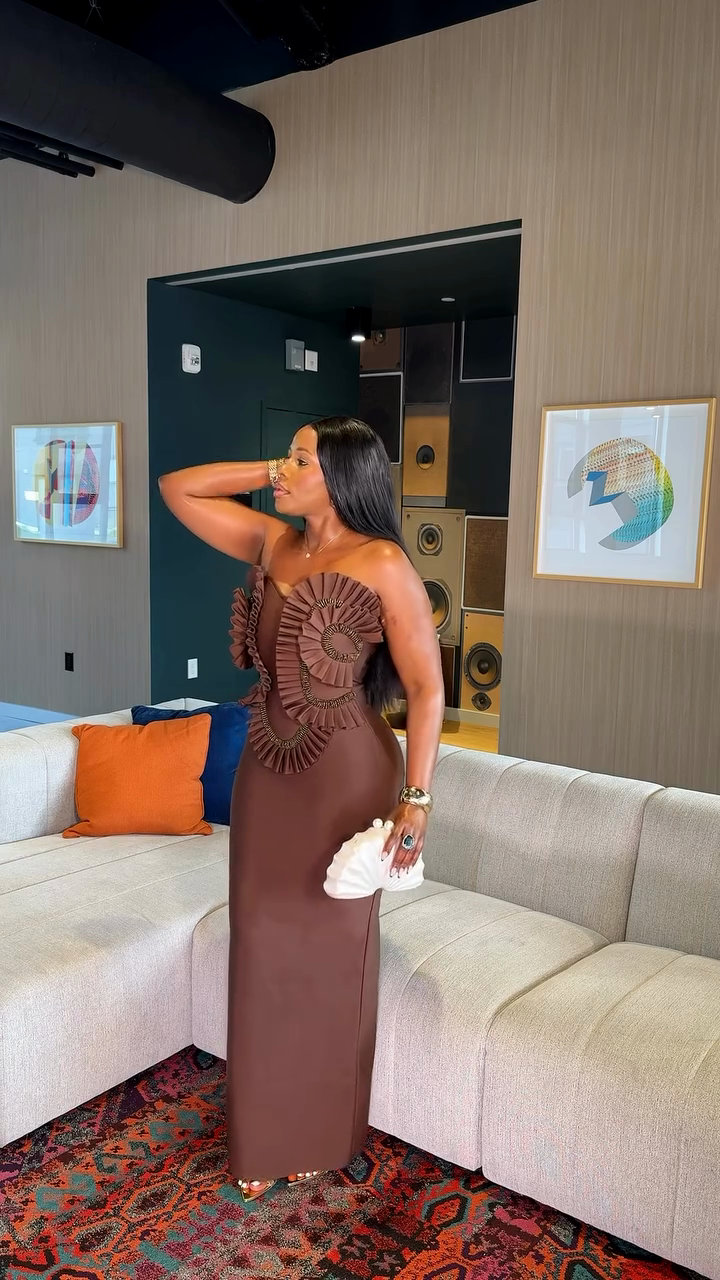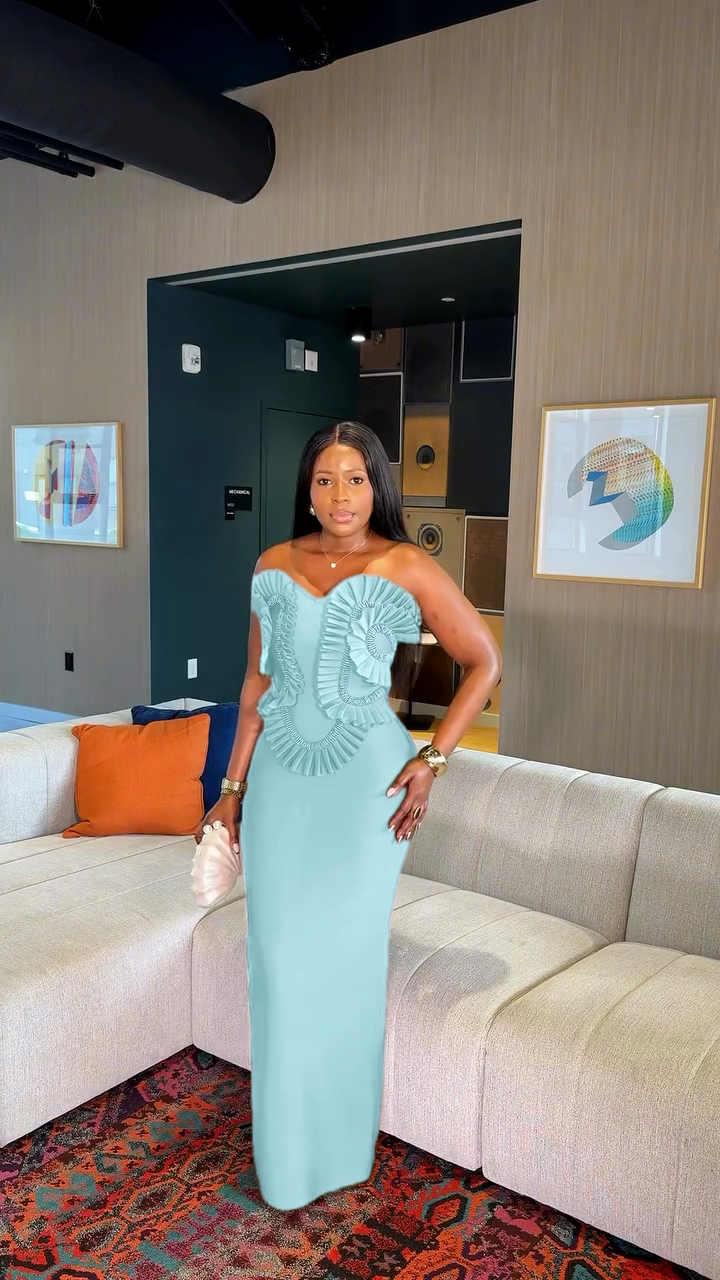 Ruffled Strapless Maxi Evening Dress