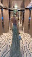 Silver Halter Neck Beaded Maxi Dress