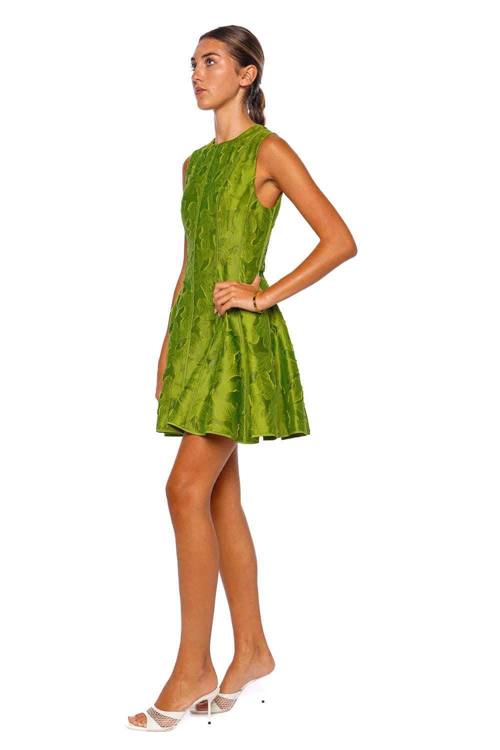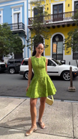 Sleeveless Green Embroidered Mini Dress