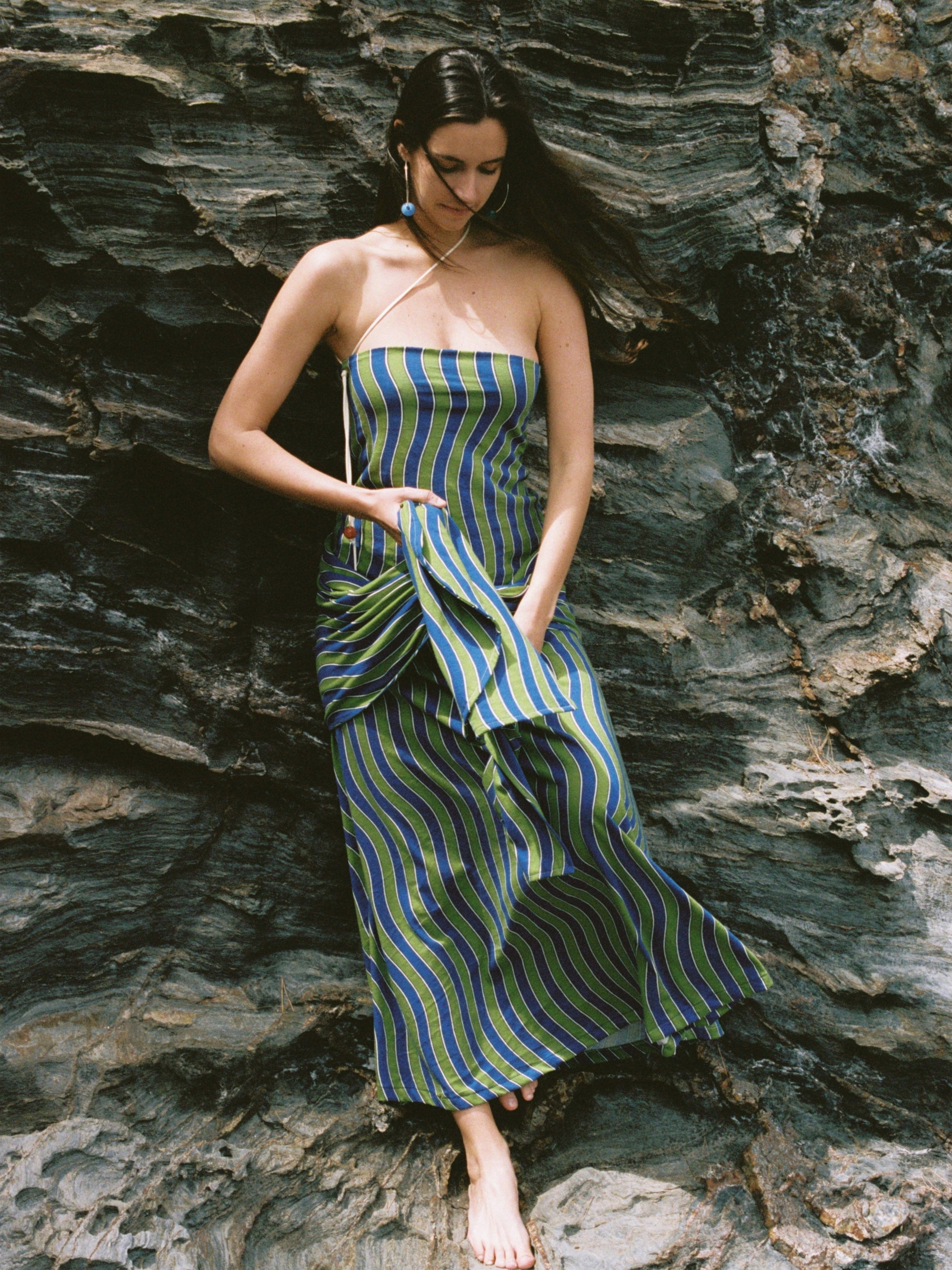 Striped Strapless Maxi Dress