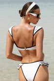 White & Black Trim Ruffled Bikini Set