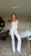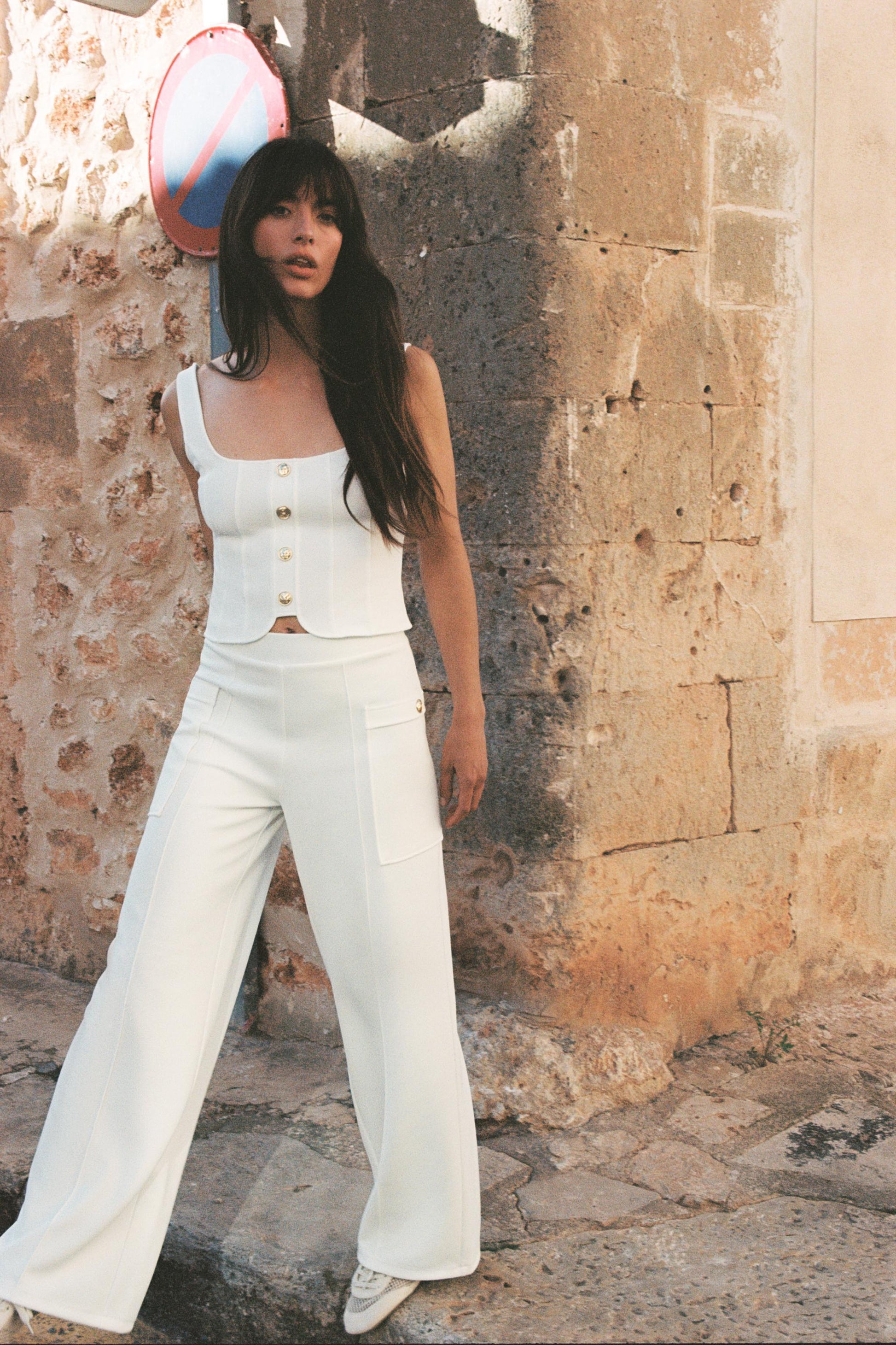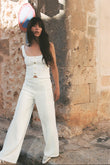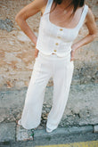 White Button - Front Crop Top & Wide - Leg Pants Set