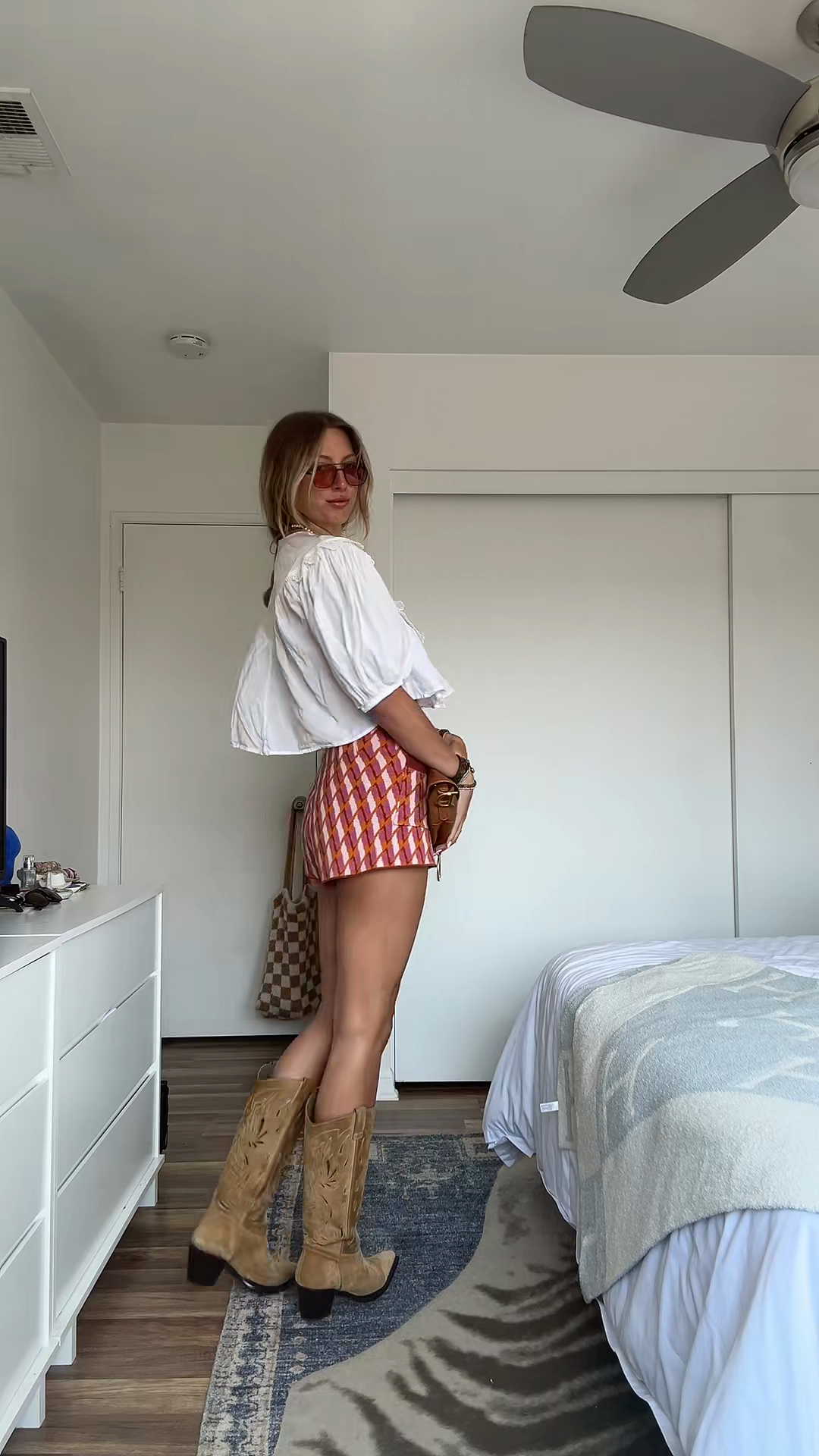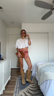 White Cropped Top with Puff Sleeves and Printed Shorts Set
