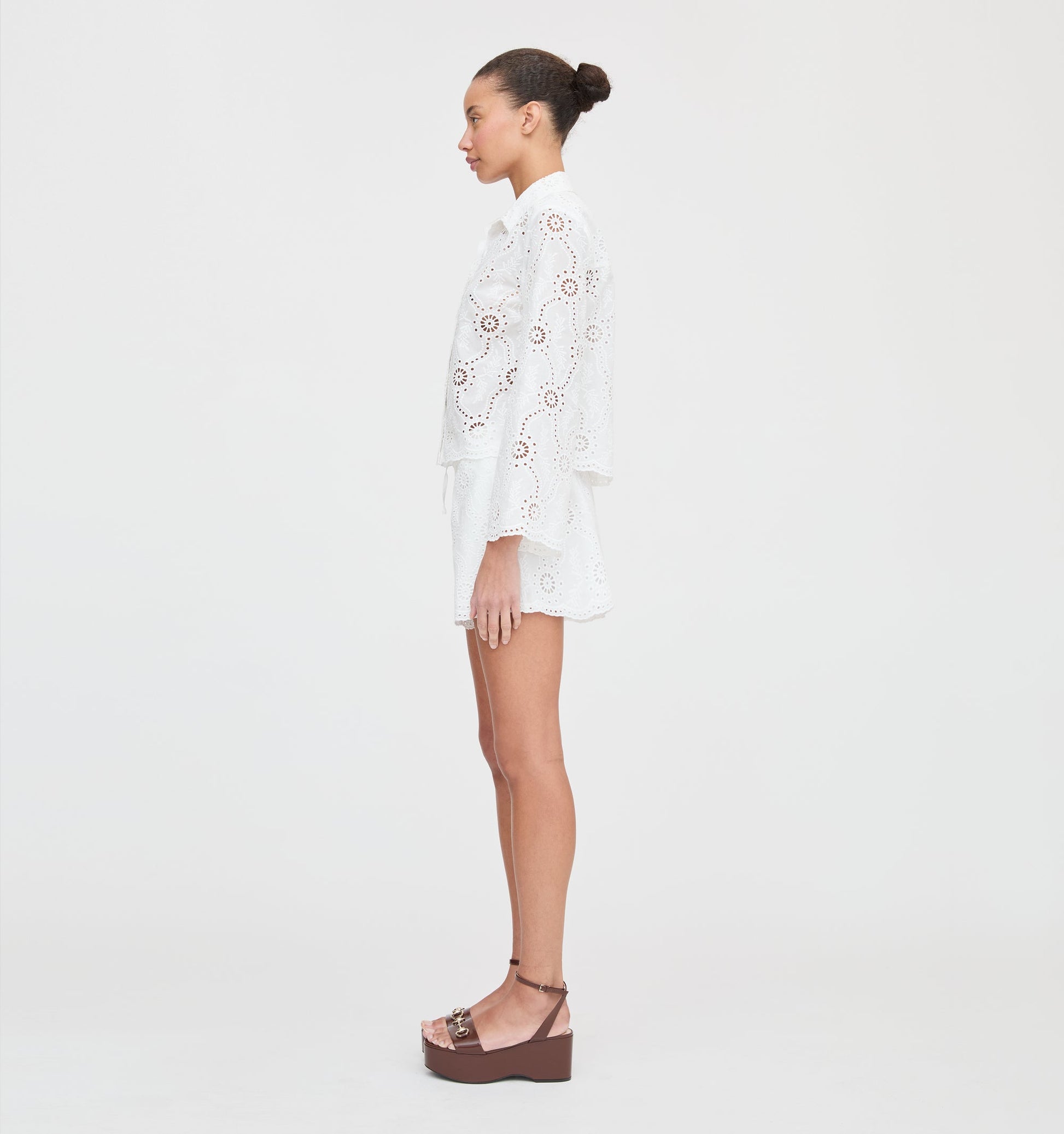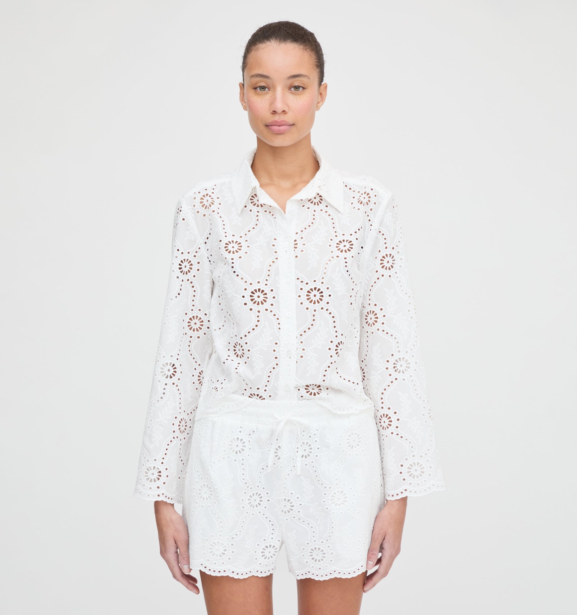 White Eyelet - Embroidered Shirt and Shorts Set
