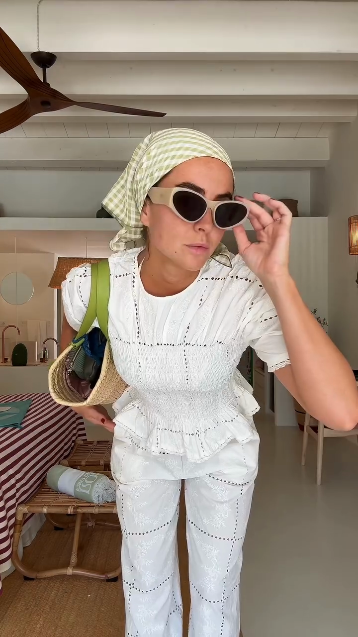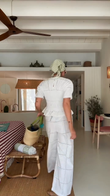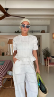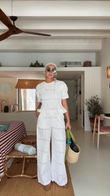 White Eyelet Embroidery Top and Wide Leg Pants Set