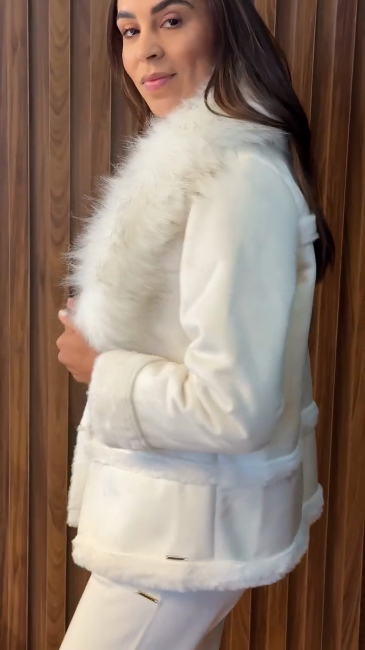 White Faux Fur - Collar Jacket