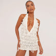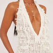 White Fringe Halter Mini Dress
