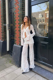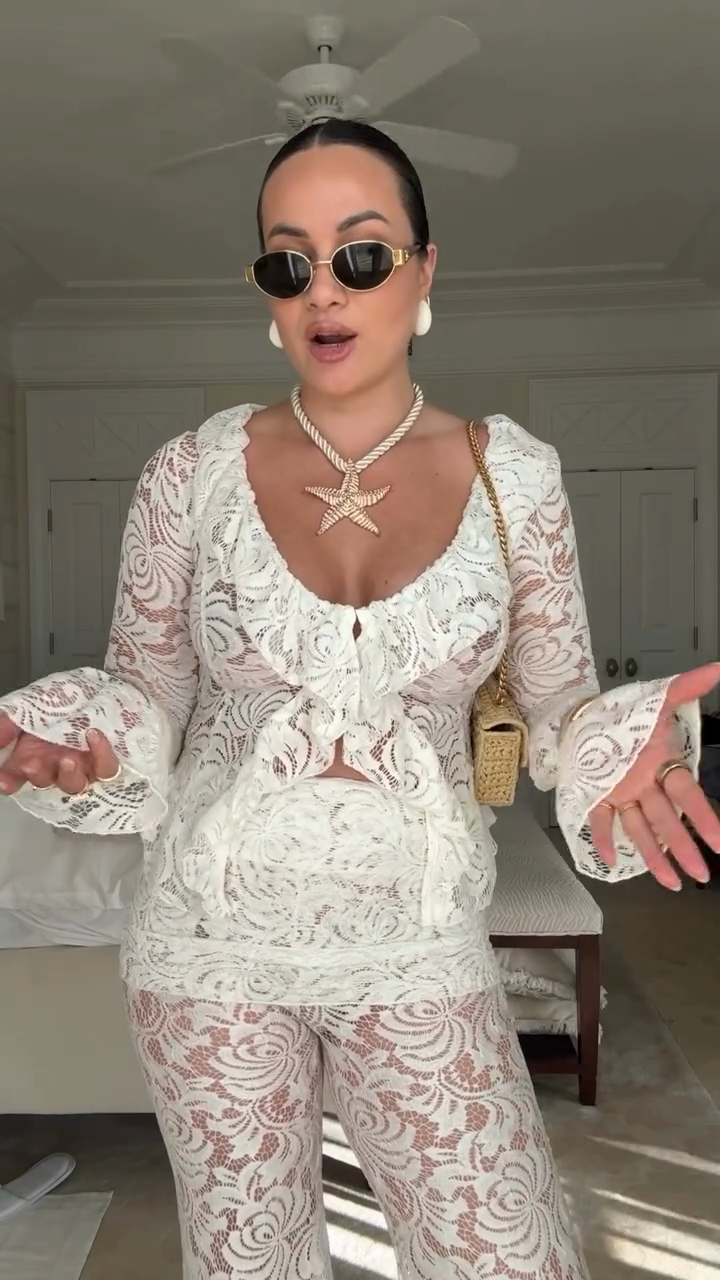 White Lace Bell - Sleeve Top and Flared Pants Set