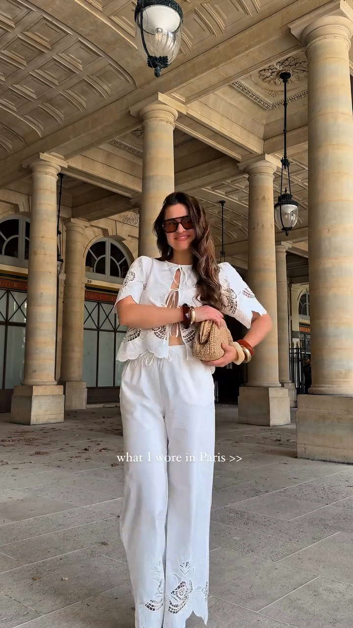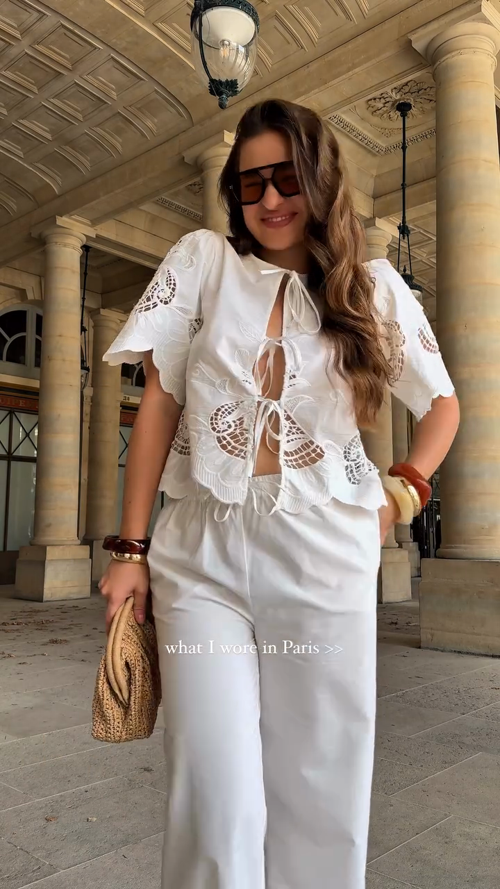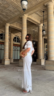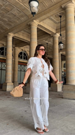 White Lace - Embroidered Top and Wide - Leg Pants Set