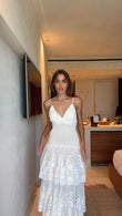 White Lace Tiered Maxi Dress
