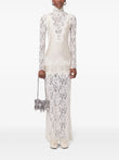This white maxi dress, embellished with delicate lace and a floral pattern, creates a refined and elegant look. The high neckline and long sleeves add a touch of demure elegance, while the slim fit enhances the figure.