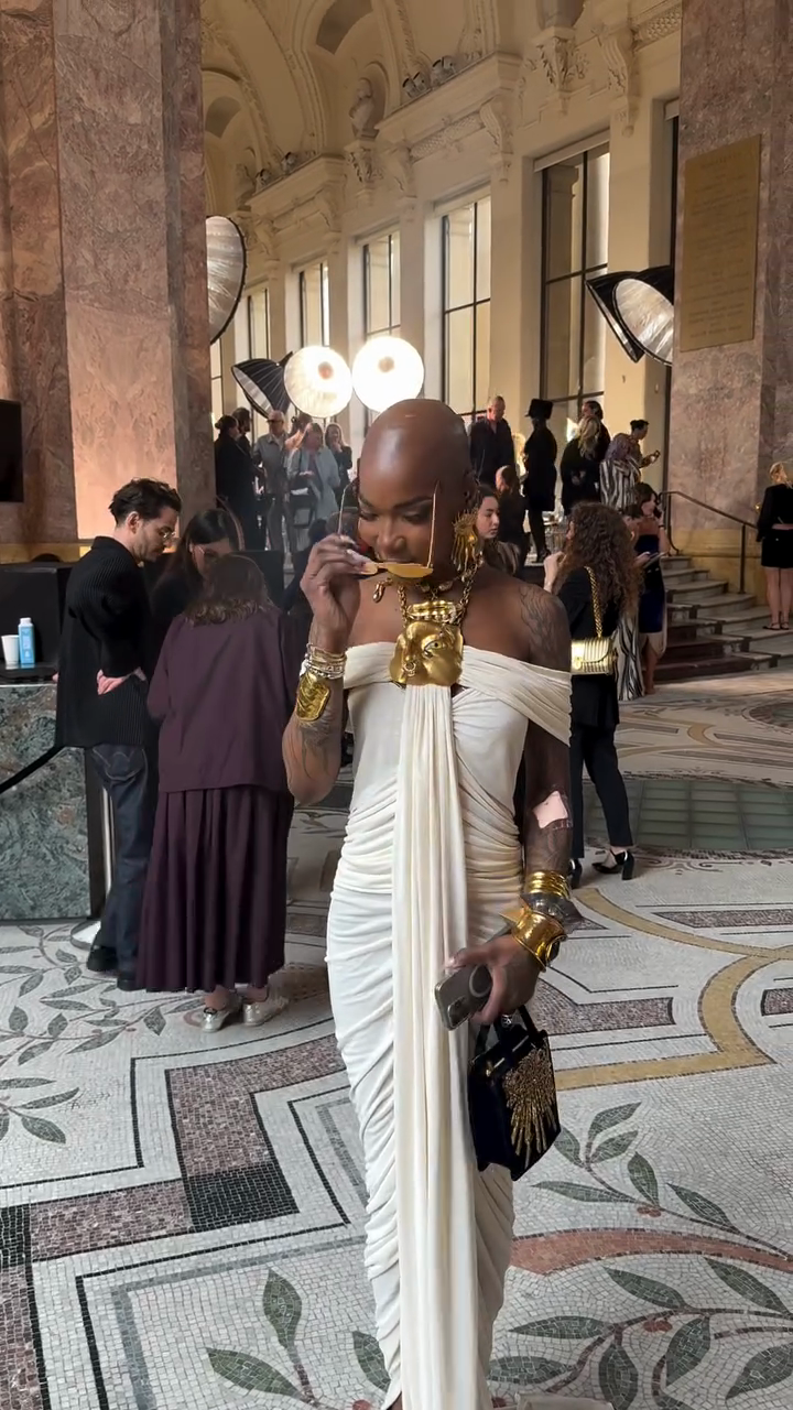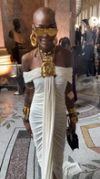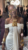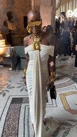 White off-the-shoulder draped gown