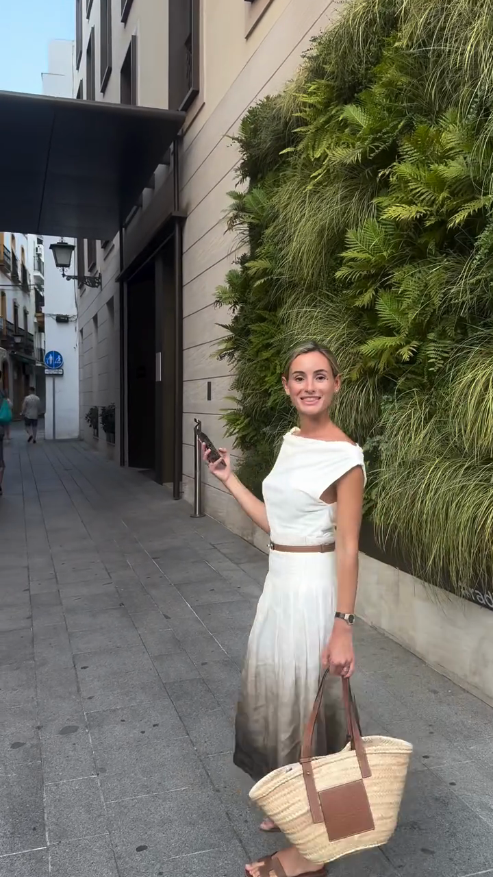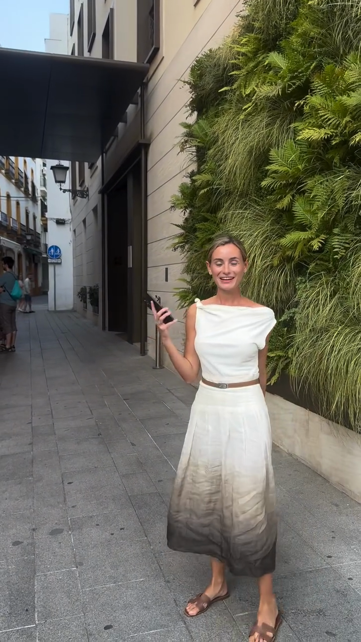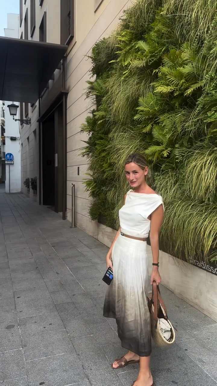 White Ombre Midi Dress with Brown Belt