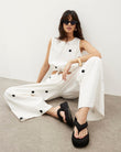 White Polka Dot Crop Top & Wide - Leg Pants Set