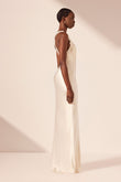 White Satin Maxi Dress with Lace Trim