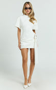 White Short - Sleeve Mini Dress with Gold Hardware Detail