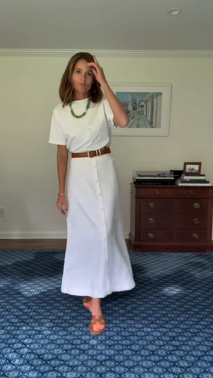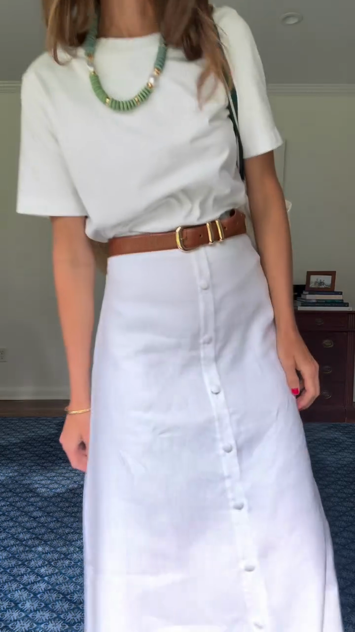 White Short - Sleeve Top and Button - Front Maxi Skirt Set